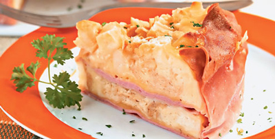 Repita as camadas sucessivamente, termine com o pão e por último despeje o restante da mistura. Polvilhe a salsa e asse no forno preaquecido a 200ºC por 45 minutos ou até o creme ficar firme e dourar. Sirva quente ou fria.